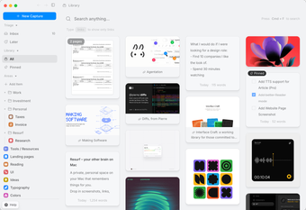 Uygulamanın otomatik düzenleme özelliğinden yoksun olduğunu unutmayın. Yeni öğeler geçici bir gelen kutusuna gider ve bunları sol panel aracılığıyla manuel olarak kategorilere ayırmalısınız. Çok sayıda yakalama ile bu süreç karmaşık hale gelebilir ve düzenli kalmak için ekstra çaba gerektirebilir.